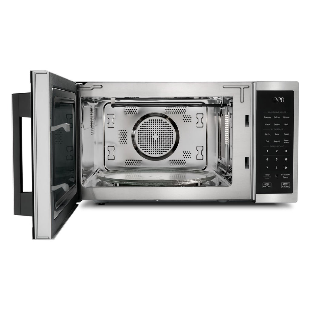This 900 watt countertop microwave oven puts versatility first with All in One cooking modes including Air Fry, Grill Mode, Roast Mode and Combi. Its modern easy-to-use design and 1.0 ft. capacity fits most meals while not taking up too much countertop space, and its Dishwasher-Safe Turntable Plate makes for easy cleanup.