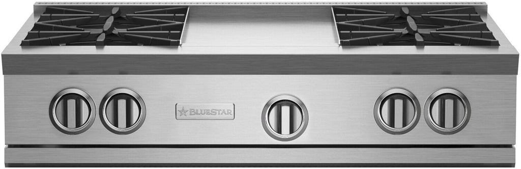 BlueStar® RNB rangetops can also be customized to suit your personal design and style. Add a touch of color with colored knobs on any RNB rangetop. Further customize with metal trim finishes and different backguard heights. The options are endless.