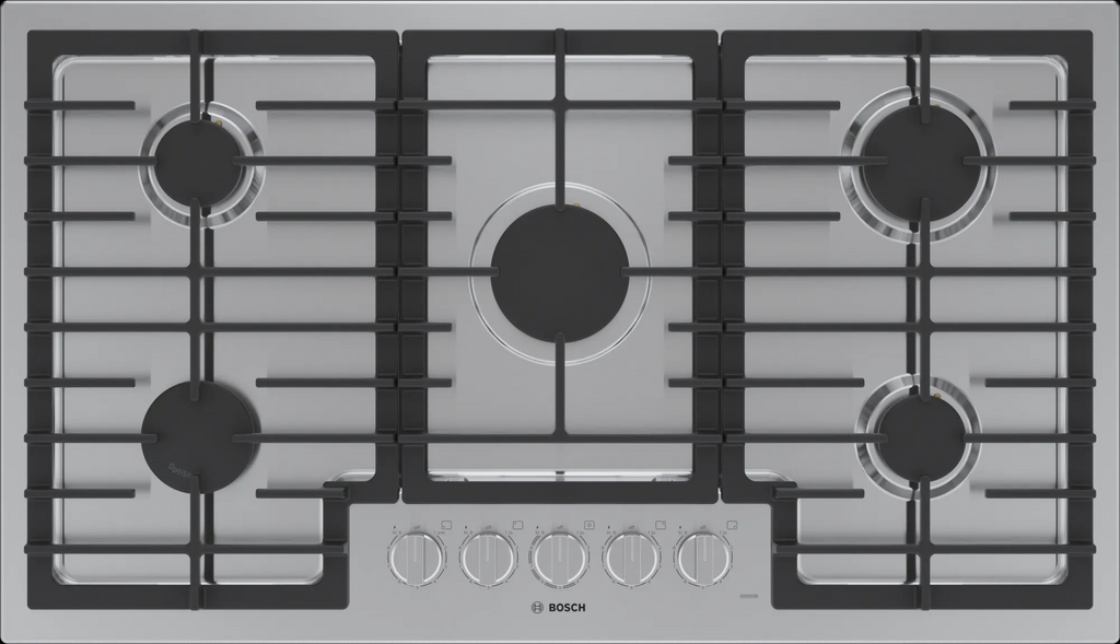 Bosch gas cooktops are engineered to perform precisely, offering high heat and low simmer options for optimal cooking flexibility. Electronic re-ignition will automatically re-ignite the burner in case the flame goes out. Its seamless, one-piece stainless steel design makes clean-up simple. The distinctive red LED light will indicate when the burners are on.