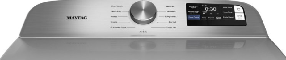 Extra Power boosts drying power to get thick fabrics drier the first time. Advanced Moisture Sensing monitors inside moisture and air temperatures to help evenly dry loads. Dry a small load fast with the Quick Dry cycle, which pairs nicely with the Quick Wash cycle on select Maytag washers to get clothes ready in no time. The Wrinkle Prevent option runs for up to 150 minutes after the cycle has ended to keep wrinkles from forming as the dryer continues to tumble. Smart features help you stay in control and efficiently manage laundry from anywhere. Use the Maytag app to remotely start or stop your appliance and get end of cycle notifications so no load is left behind. Plus, troubleshoot select issues to avoid unnecessary service calls. *Results may vary based on load size and type. **WiFi & App Required. Features subject to change. Details & privacy info at maytag.ca/connect. Appliance must be set to remote enable.