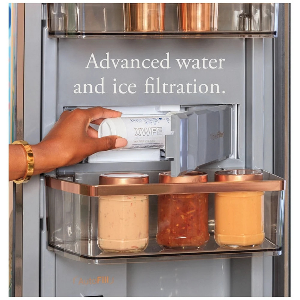 Enjoy chilled, delicious water anytime with a pitcher that automatically refills when placed on its docking station. Two curated pouring options give you quick access to filtered water.