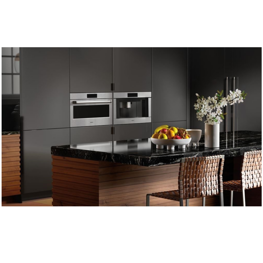 Experience all in one cooking power with the Wolf 30" wide,1.6 cu. ft. speed wall oven, combining microwave, convection, and broil technologies for versatile, oven quality results. With 10 power levels, quick-start modes, and intuitive Gourmet Mode, every meal comes out consistently delicious. The spacious stainless-steel interior fits a 9x13 pan, while dual racks and risers enhance airflow and browning. A sleek 8" full color LCD touchscreen offers customizable, guided controls, complemented by a luxurious soft-open/soft close door and elegant design that integrates seamlessly with other Wolf appliances.