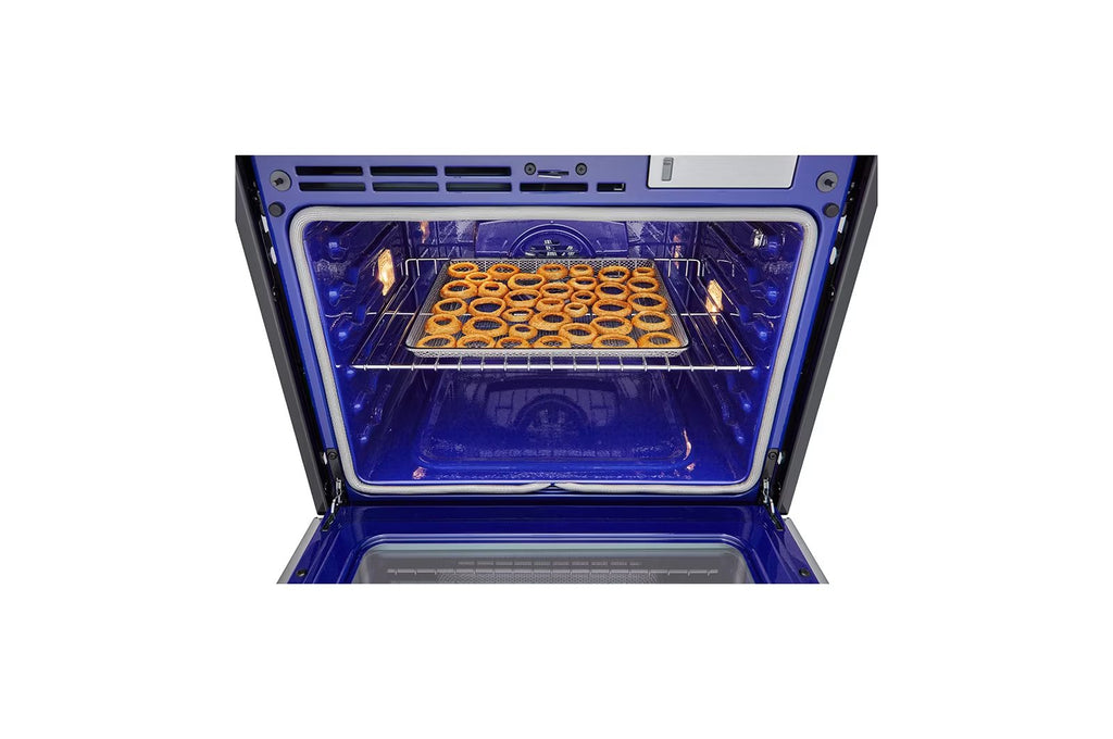 Using a third heating element attached to the fan, LG's True Convection technology distributes precise heat and hot air circulation to ensure your food is cooked evenly on every rack. Enjoy deliciously browned and crispy meals, plus faster preheating and cook times.