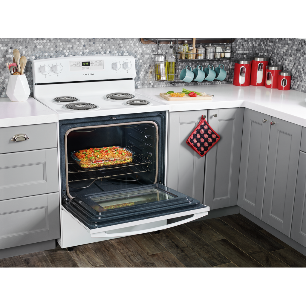 Use Bake Assist Temps on this 30-inch Amana Electric Range to make cooking more convenient. With preset temperature settings at your fingertips, simply pick the baking temperature that right for you. And if you are not yet ready to take your roast out from the oven, use the Warm Hold feature to keep it at serving temperature.