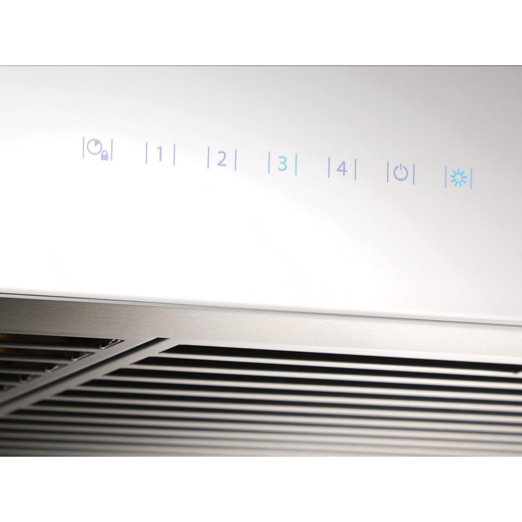 4-speed electronic controls with blue or white backlighting and 5 minute delay-off feature keeps hood running after cooking to ensure smoke & odors have cleared the environment.