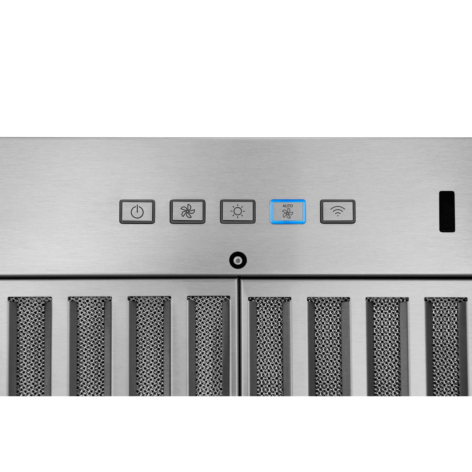 Automatic infrared sensing gives this range hood the ability to automatically adjust the fan speed based on the amount of heat being produced.