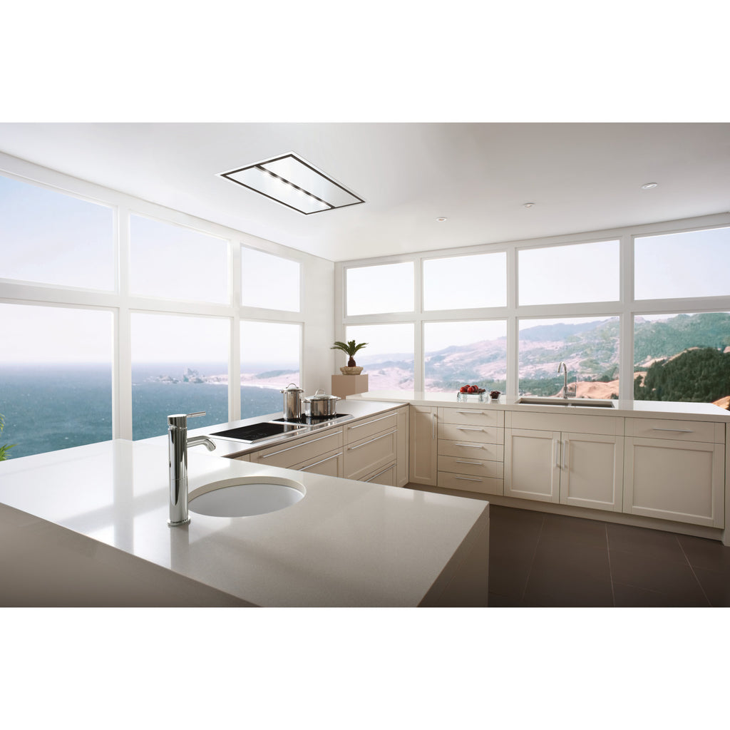 Perimeter aspiration provides superior ventilation, backed up by concealed washable mesh grease filters.