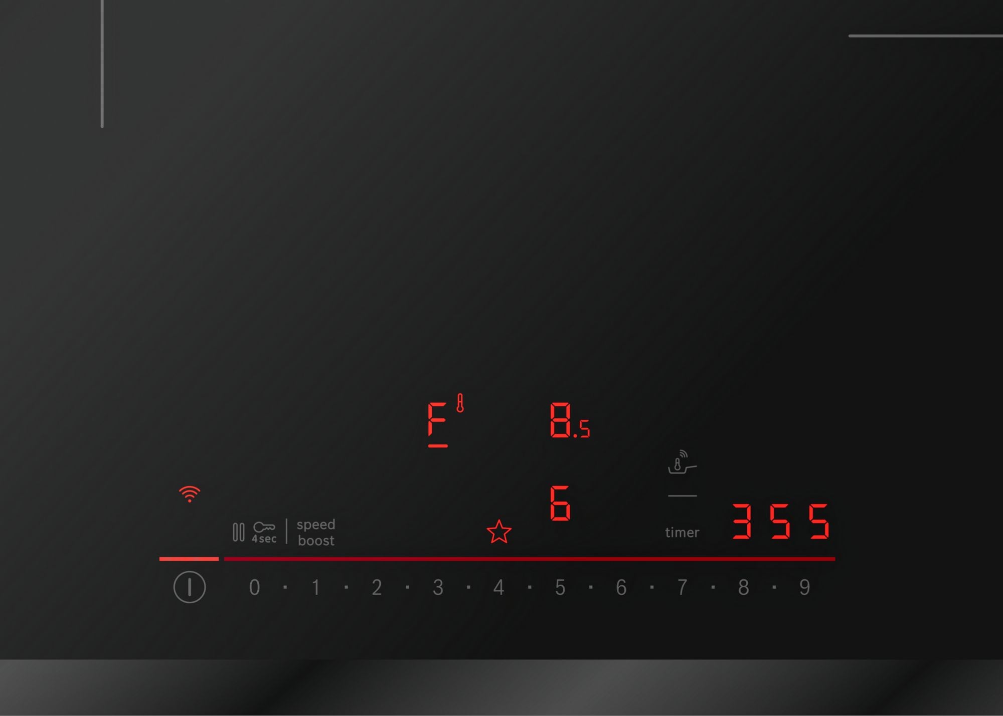 If something goes wrong or boils over, the hob automatically turns itself off and saves the last selected setting. This means you can clean it conveniently and restore the settings at the touch of a button.