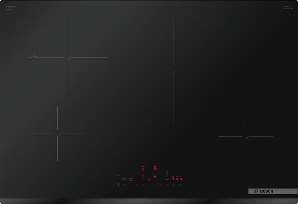 Wi-Fi Enabled cooktop allows for convenient remote monitoring with access to cooktop programs and settings via the Home Connect app.