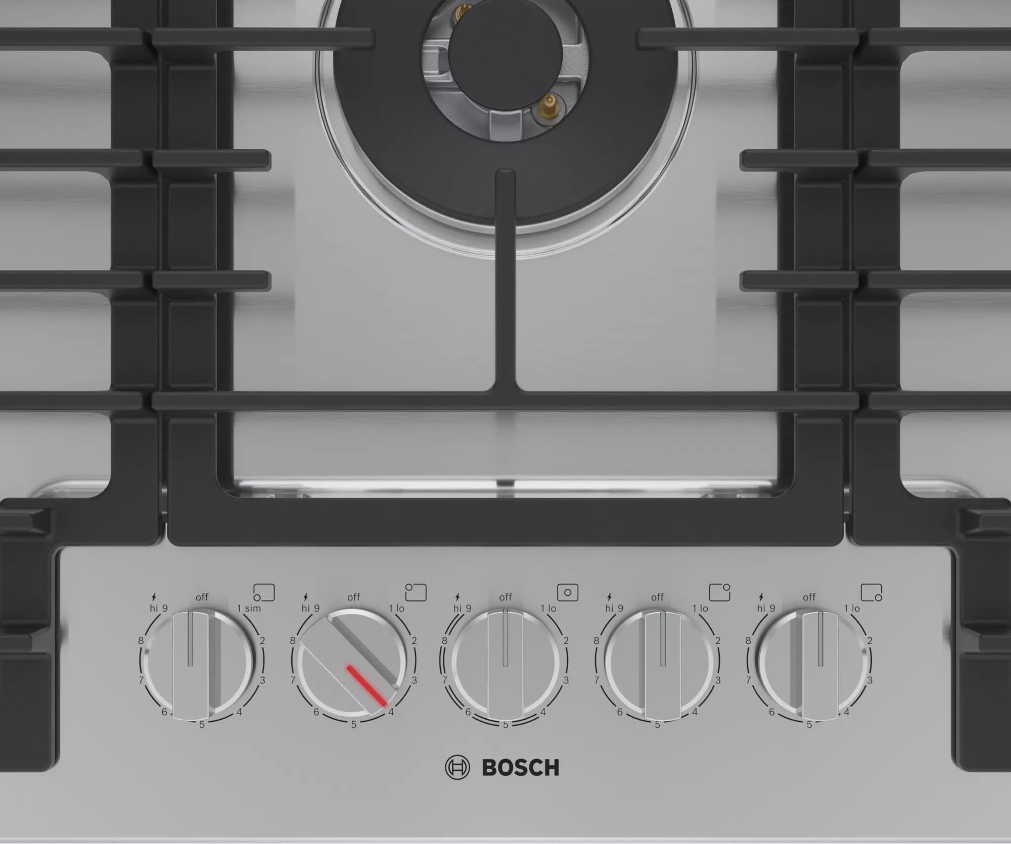 When adjusting the flame, it can be hard to determine the exact heat level you are on. Our new gas cooktops with FlameSelect® eliminates the guesswork. Equipped with nine precisely adjustable power levels, for reliable, repeatable flame regulation and perfect cooking results. Level 1 is perfect for low and gentle simmering perfect for melting chocolate and delicate sauces, and level 9 yields a rolling boil. With this precision, checking the flame height is a thing of the past.