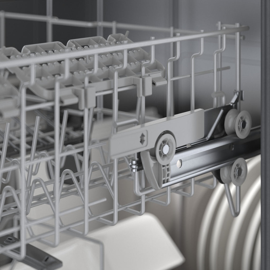 The RackMatic middle rack easily adjusts to three different heights and up to 9 separate rack positions, allowing taller items like stemware to fit in the middle rack while leaving room for pots and pans below.