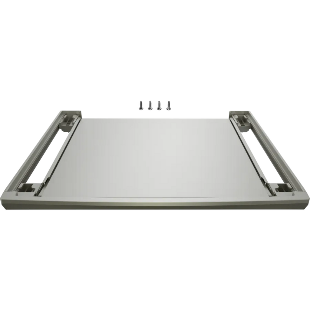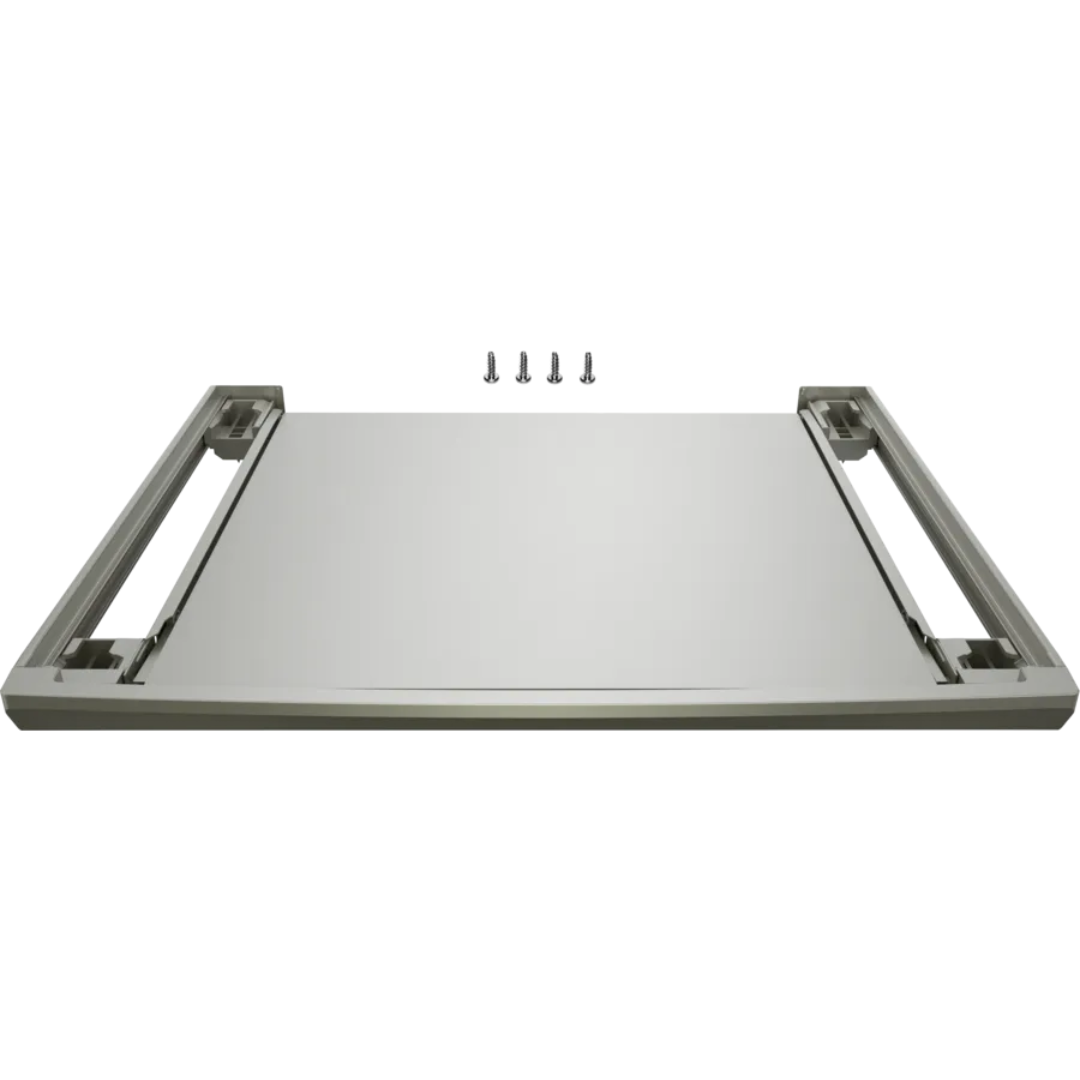Laundry Stacking Kit with Pull-Out Tray for Compact Washer & Dryer in Silver.