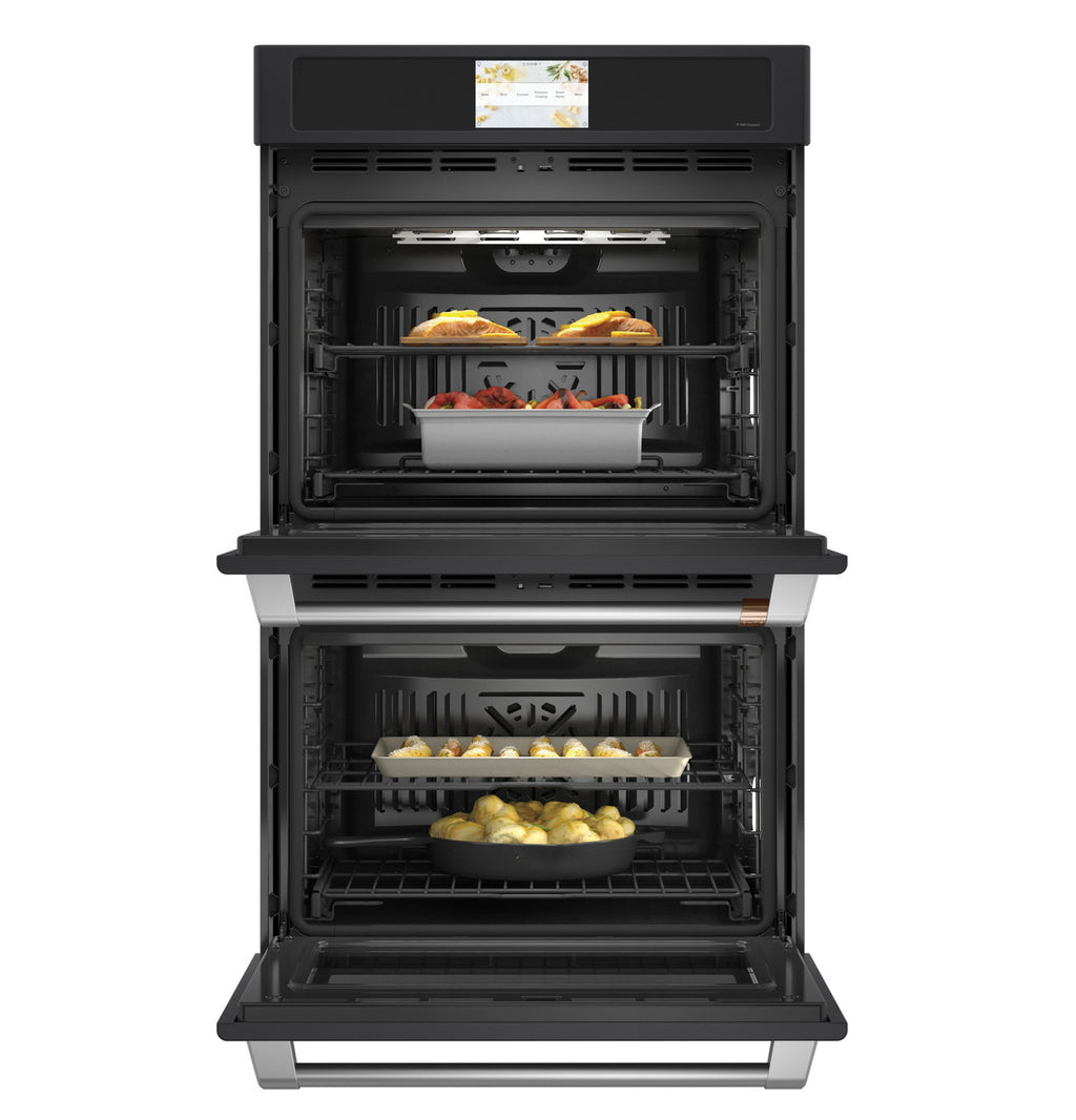 This Café Double Wall Oven celebrates style and performance with curated details that make cooking for a crowd a total delight. No Preheat Air Fry and a Dehydrate Setting give you new ways to deliver stunning results, and an In-oven Camera lets you monitor your food's progress while you connect with family and friends outside the kitchen. Precision Cooking Modes and a temperature probe are your secret ingredients for every meal, guaranteeing exact results so you know each dish will be a crowd pleaser. When it comes to clean up, smooth-gliding racks can be left in the oven during the Self-Clean cycle and a Steam Clean option is perfect for wiping up messes after each meal. Plus, it comes in countless combinations of finishes and hardware, to create a look as unique as you are.