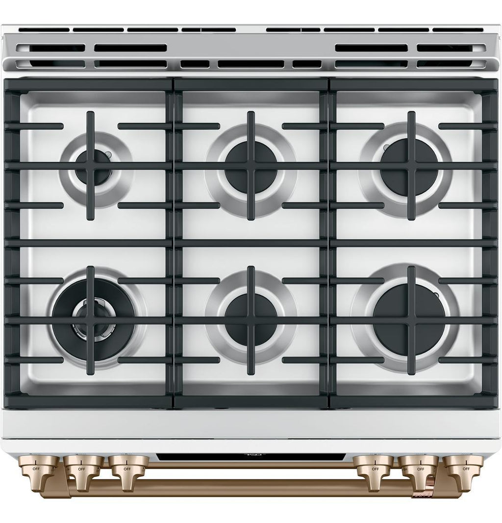 Entertaining for large groups is easy with the industry's first six burner, edge-to-edge cooktop that can accommodate cookware of all sizes and a cast-iron integrated griddle that provides enough room to perfectly flip crab cakes, arepas and other crowd favourites.