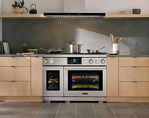 Smart functionality enables the hood to automatically turn on in conjunction with a compatible Dacor cooking product.