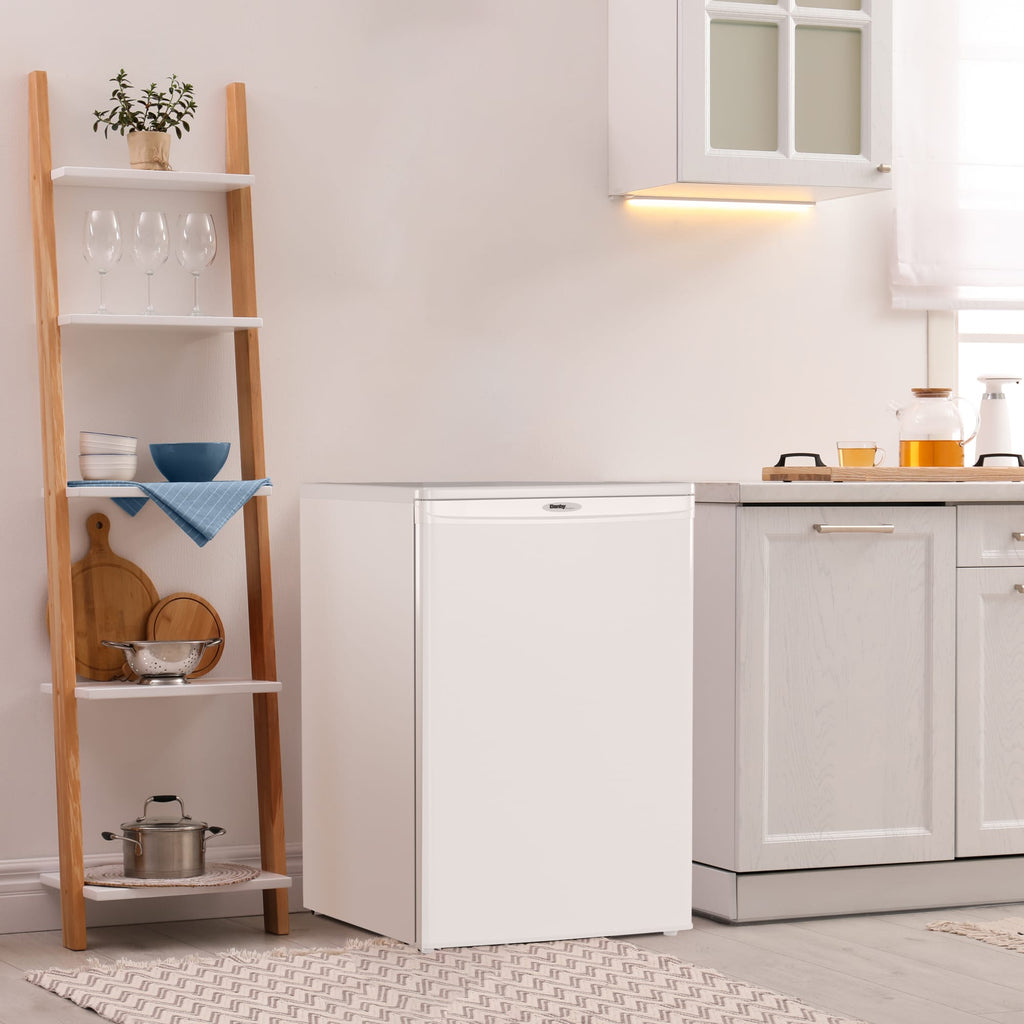If you?re in the market for the ideal freezer for your condo, apartment, trailer, or cottage etc, your search can stop here with this superb upright model from Danby. This compact unit can provide you with 4.3 cubic feet (122 litres) of cooling and storage area without taking up too much room. Your electricity bills will also be kept in check with this efficient appliance as it comes with the prestigious Energy Star rating. There?s an abundance of interior room and organizing is made easy with the three convenient door shelves and additional pair of quick-freeze shelves. The manual defrost system makes the freezer easy to clean, and the mechanical thermostat ensures accurate temperature control. The door, which features an integrated handle, can be quickly and easily adjusted for either left or right-handed opening. This model comes in a classy fresh white finish and boasts a scratch-resistant worktop for storing extra accessories. You?ll also find this refined freezer comes with a 5
