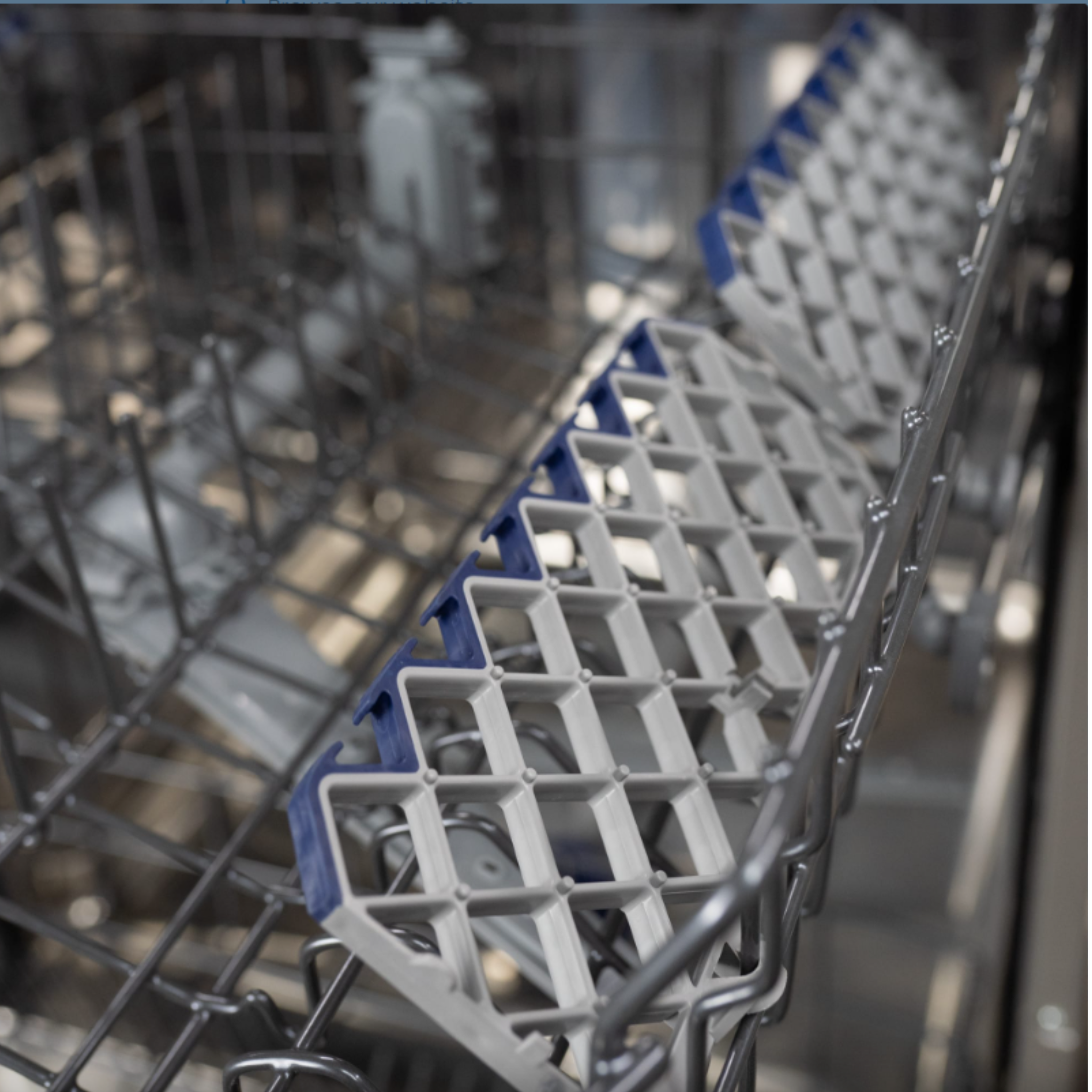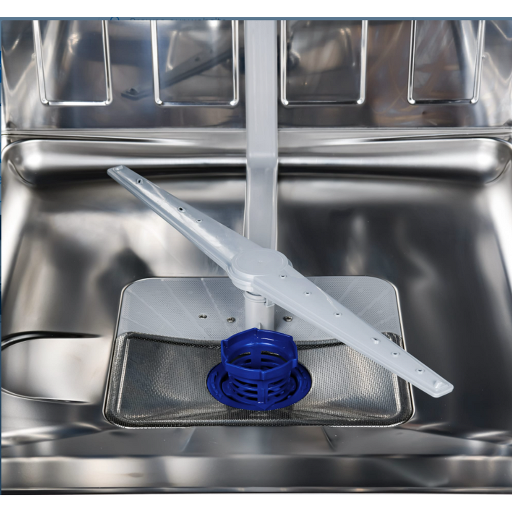 The fixed upper rack keeps dishes securely in place, while a specialized mug shelf offers extra room for cups and small items, improving space efficiency.