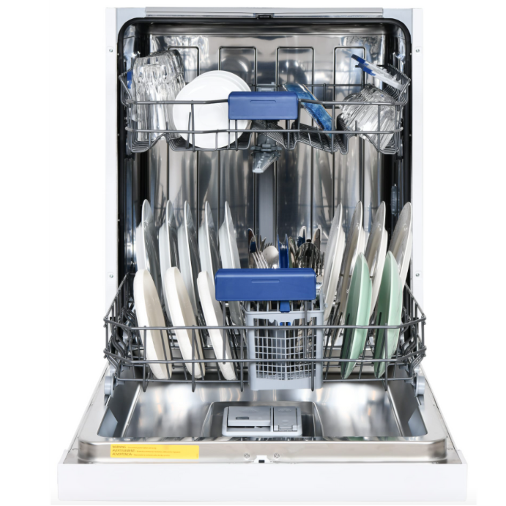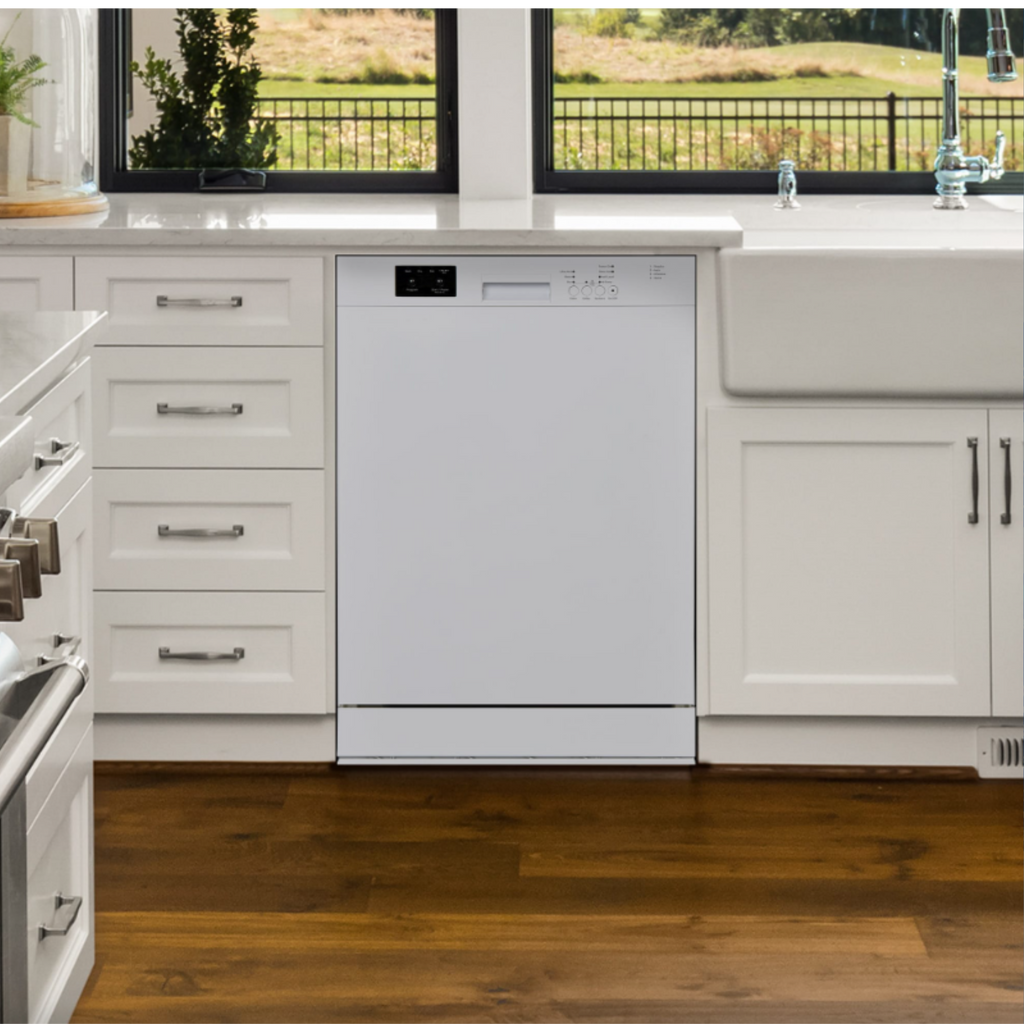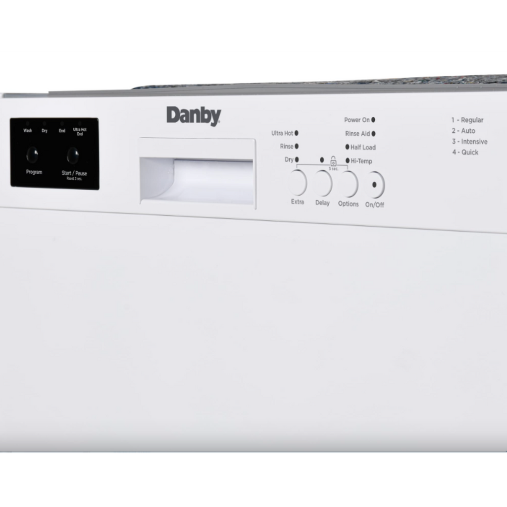 The Danby DDW2400ESS 24" Built-In Dishwasher in White combines durability, efficiency, and style. Its stainless steel tall tub design resists stains, odors, and rust, ensuring a pristine look for years. Operating quietly at 51 dB, it maintains a peaceful kitchen ambiance. Energy Star compliant, this dishwasher is both eco-friendly and cost-effective. With a 14 place settings capacity and 4 versatile wash cycles, it easily handles large family meals or dinner parties. The convenient delay start feature allows you to schedule washes up to 24 hours in advance. The fixed upper dish rack and upper basket mug shelf provide secure and organized spaces for all your dishes. Available in both White and Stainless Steel finishes, it seamlessly integrates with any kitchen decor, offering both functionality and elegance.