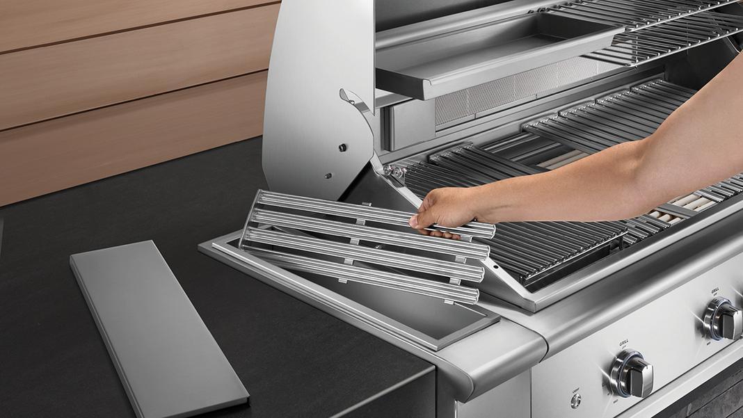 Brilliant 12 volt lighting safely illuminates what you're cooking while emitting a welcome glow around the whole grill. Bezel lighting on dials glow white when the lights or grill are on, and orange when the gas and grill are working.
