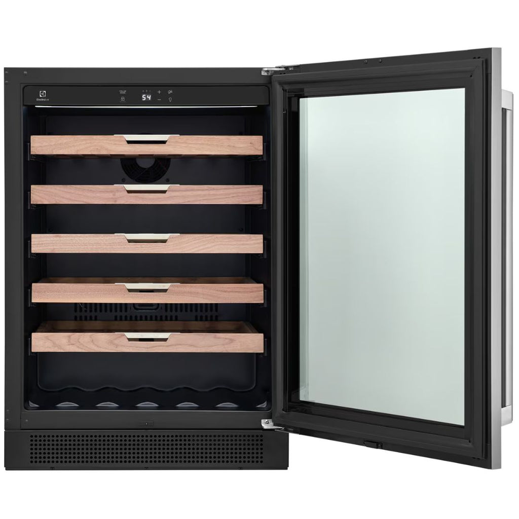 Store all bottle shapes and sizes - even your favorite champagne - without scratching the labels with Electrolux wide-slat walnut shelving. Shelves fully extend enabling ease of organization and access to your wine collection. Premium walnut slats cushion wine from harmful vibration