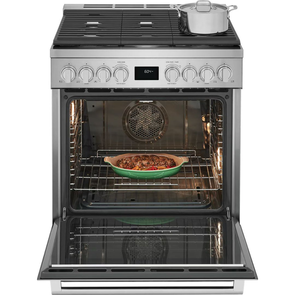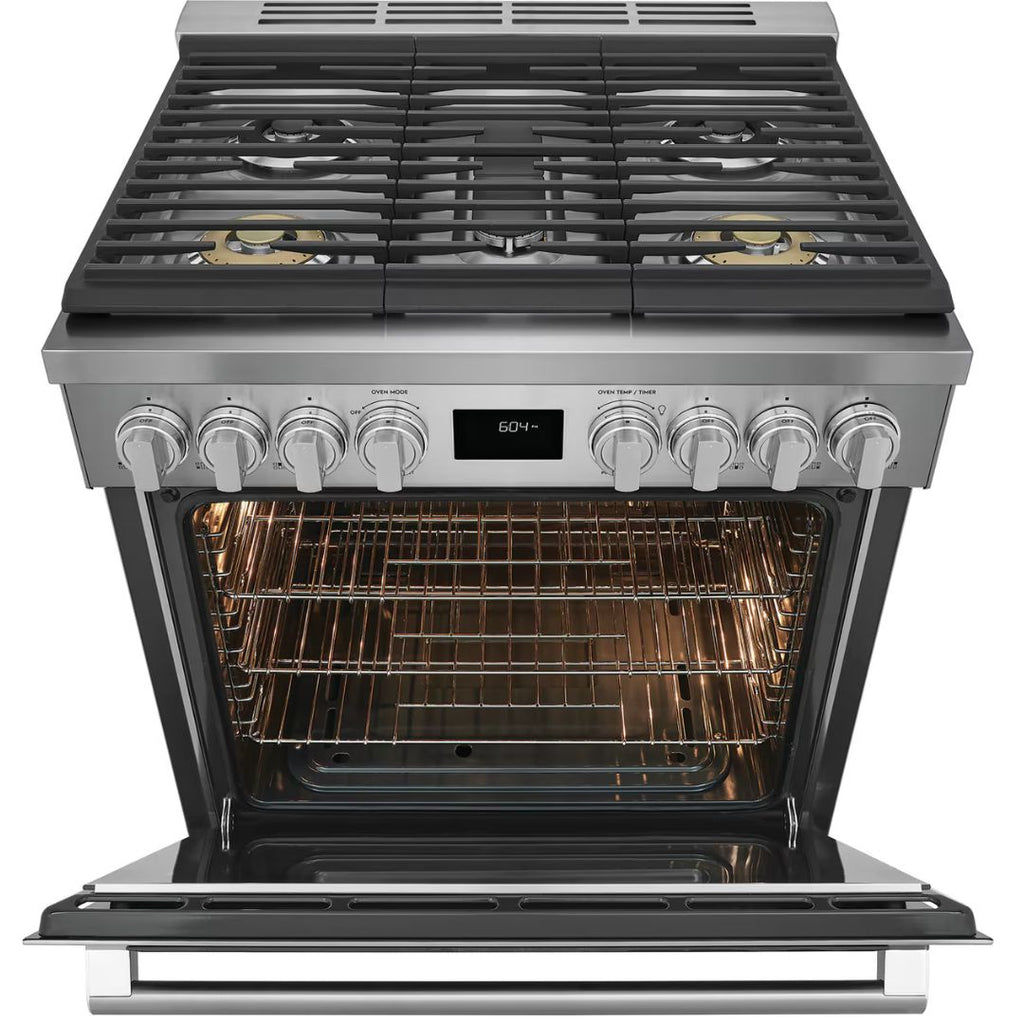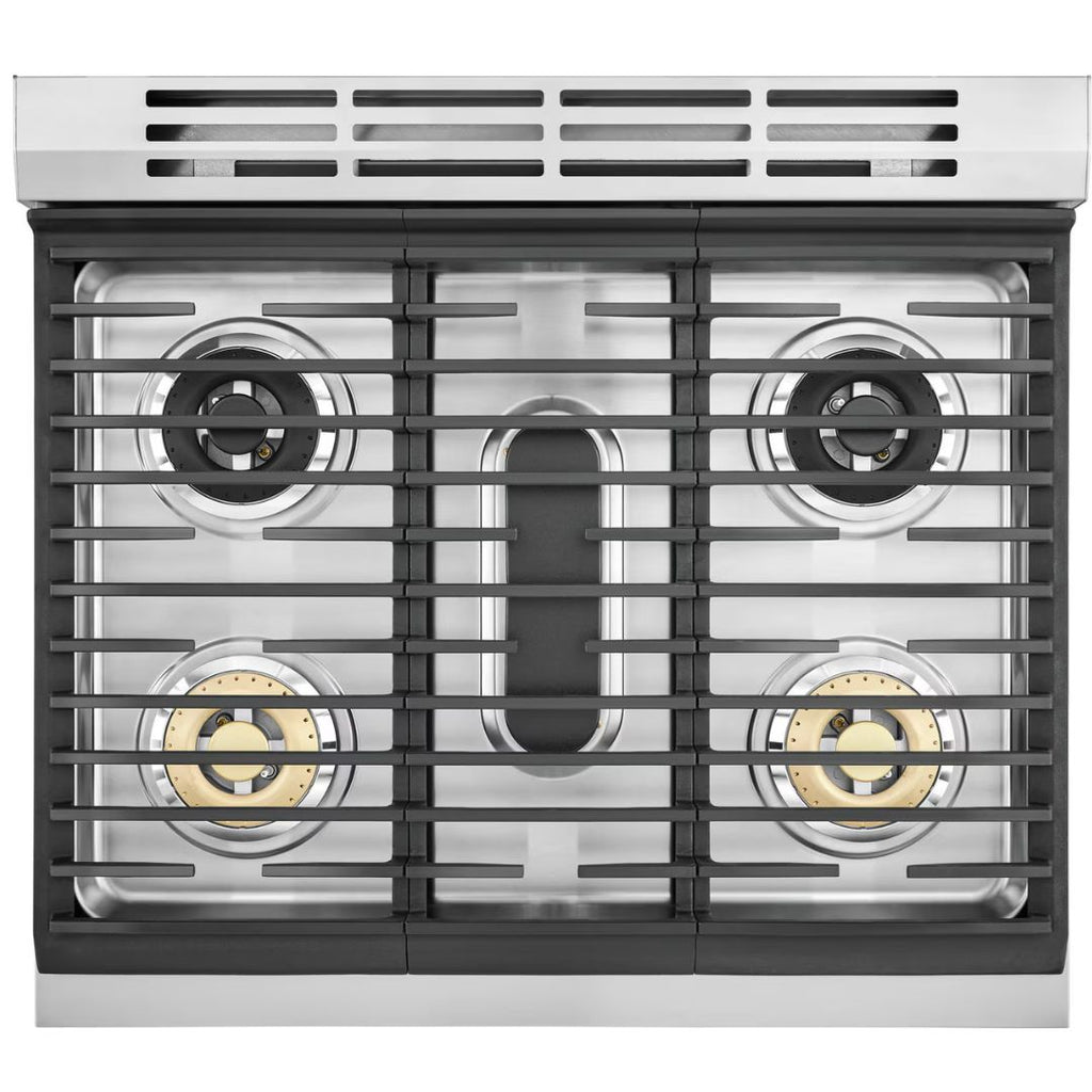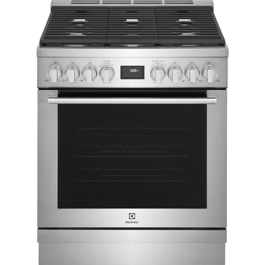 Full-framed linear grates, sturdy knobs, premium brass burner accents and the Electrolux signature pinstriped glass lend to the sleek design that make this range a focal point of your kitchen