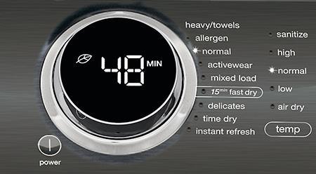 Knows after 90 seconds a more accurate time your clothes will be dried to perfection so you don't have to keep checking on your load