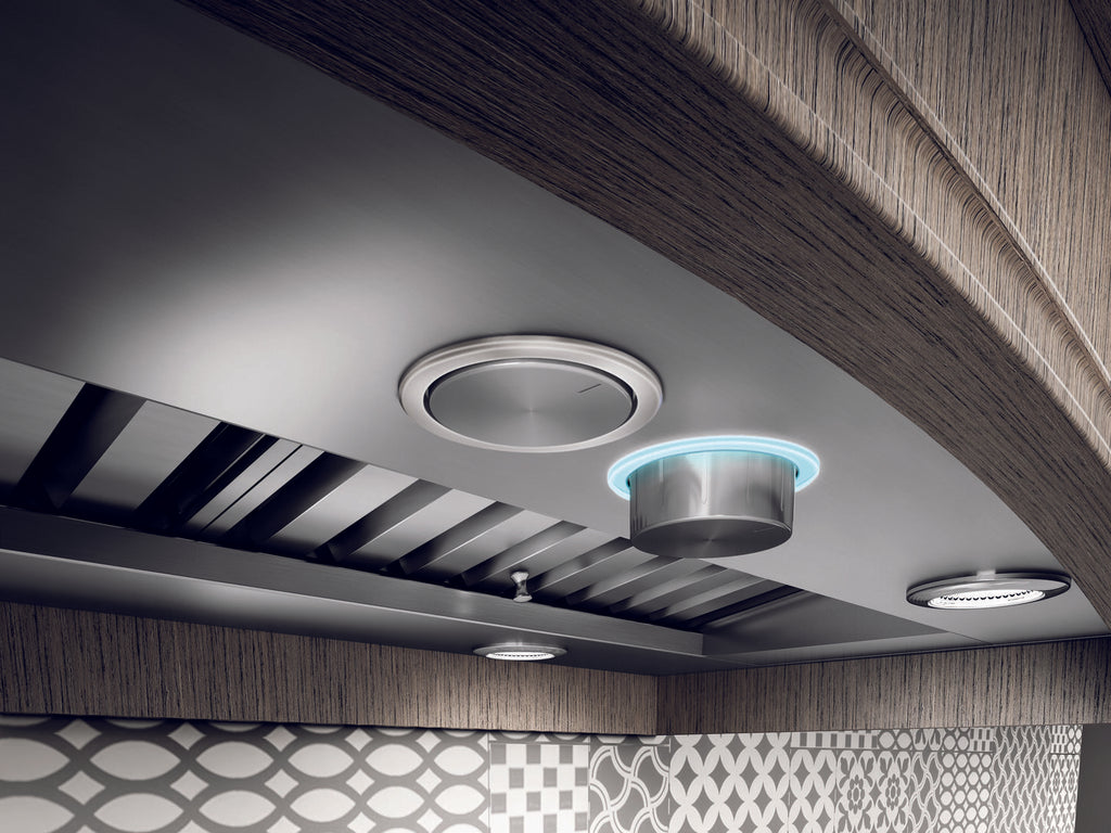 Arezzo provides professional grade performance, while being discreetly mounted inside the cabinetry. Available in 28 ½" and 34" width with a 600 CFM blower, and equipped with a 1200 CFM blower for widths of 34 ½", 40 ½" and 46 ½" for extraordinary ventilating power. The extra depth (22") is ideal for supporting powerful professional ranges. Plus the All-In-One design avoids the need to purchase a stainless liner. Hidden metallic in/out knob controls operate the 4-speed blower and LED lighting.