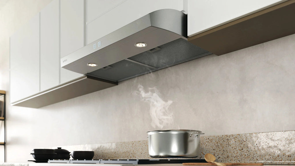 CFM Reduction System (CRS), is an exclusive feature to Elica hoods, which enables the user to reduce directly in the glass touch control the maximum blower CFM, to meet local code requirements.