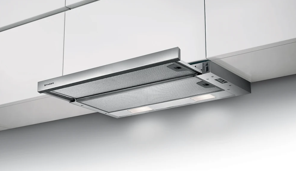 The integrated Flexa slide out hood is ideal for bringing a streamlined, minimalistic look to your kitchen. Its sleek stainless steel pull-out visor slides easily into place when in use, then neatly tucks away when not in use. For a customized look, the front strip can be replaced with material to match your cabinets.