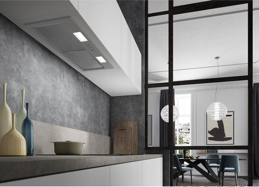 Sleek and powerful cabinet insert hood, can be converted for ductless filtration