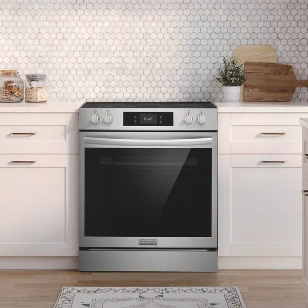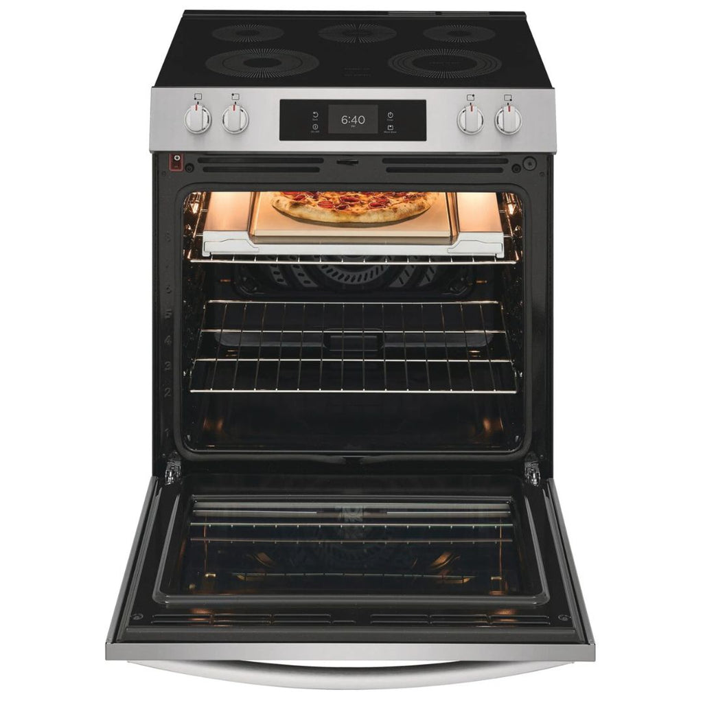 Bring restaurant-quality cooking to your kitchen with the 6.2 cu.ft Frigidaire Gallery Electric Range featuring a built-in Stone-Bake Pizza Oven. Reach authentic pizza-making temperatures of 750°F+ to bake fresh, crispy, stone-baked perfection pizzas in as little as two minutes! This range comes ready with a pizza shield, 15-inch x 15-inch stone, and peel, plus a versatile five-element cooktop with a powerful 3,200W EvenTemp element. Enjoy convenient No Preheat baking, healthier Air Fry meals, and slow-cooked dishes that lock in moisture and flavor, all in one sleek, high-performance appliance.