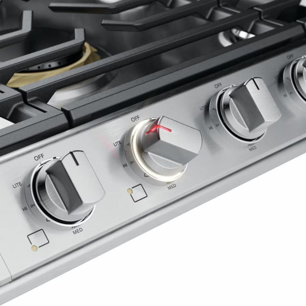 From a 5,000 BTU simmer burner for delicate foods to a powerful 18,000 BTU Even Temp burner, this five-burner cooktop is designed to handle all of your cooking needs.