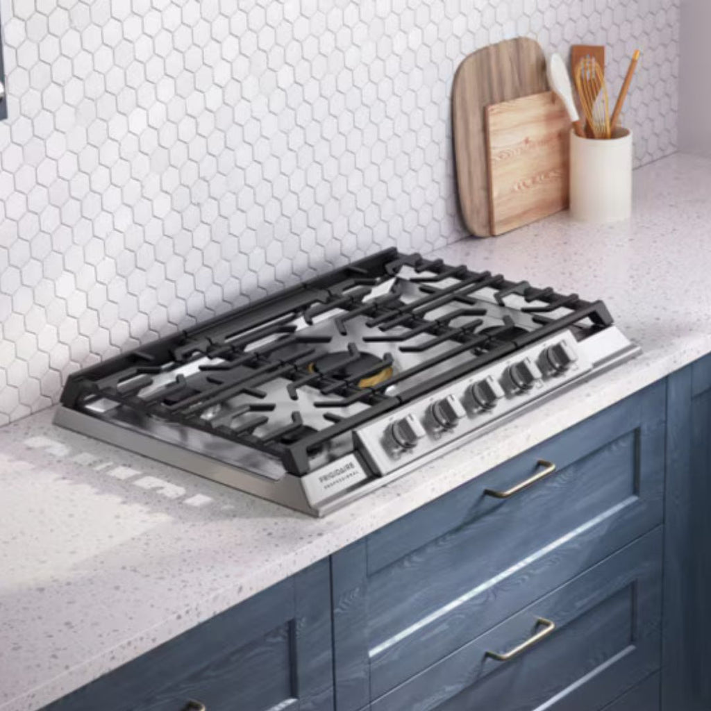 We promise that your new 30" Frigidaire Professional gas cooktop will fit your existing countertop cutout of the same width and configuration, or we will reimburse you for cabinet modification costs up to $100 * Via mail-in rebate. See https://www.Frigidaire.com/FitPromise for additional information.