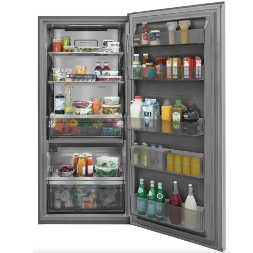 Upgrade to an eye-catching built-in look with our beautiful single-door refrigerator and customize your kitchen with an optional trim kit and the ability to place refrigerator and freezer together or apart based on your kitchen layout.