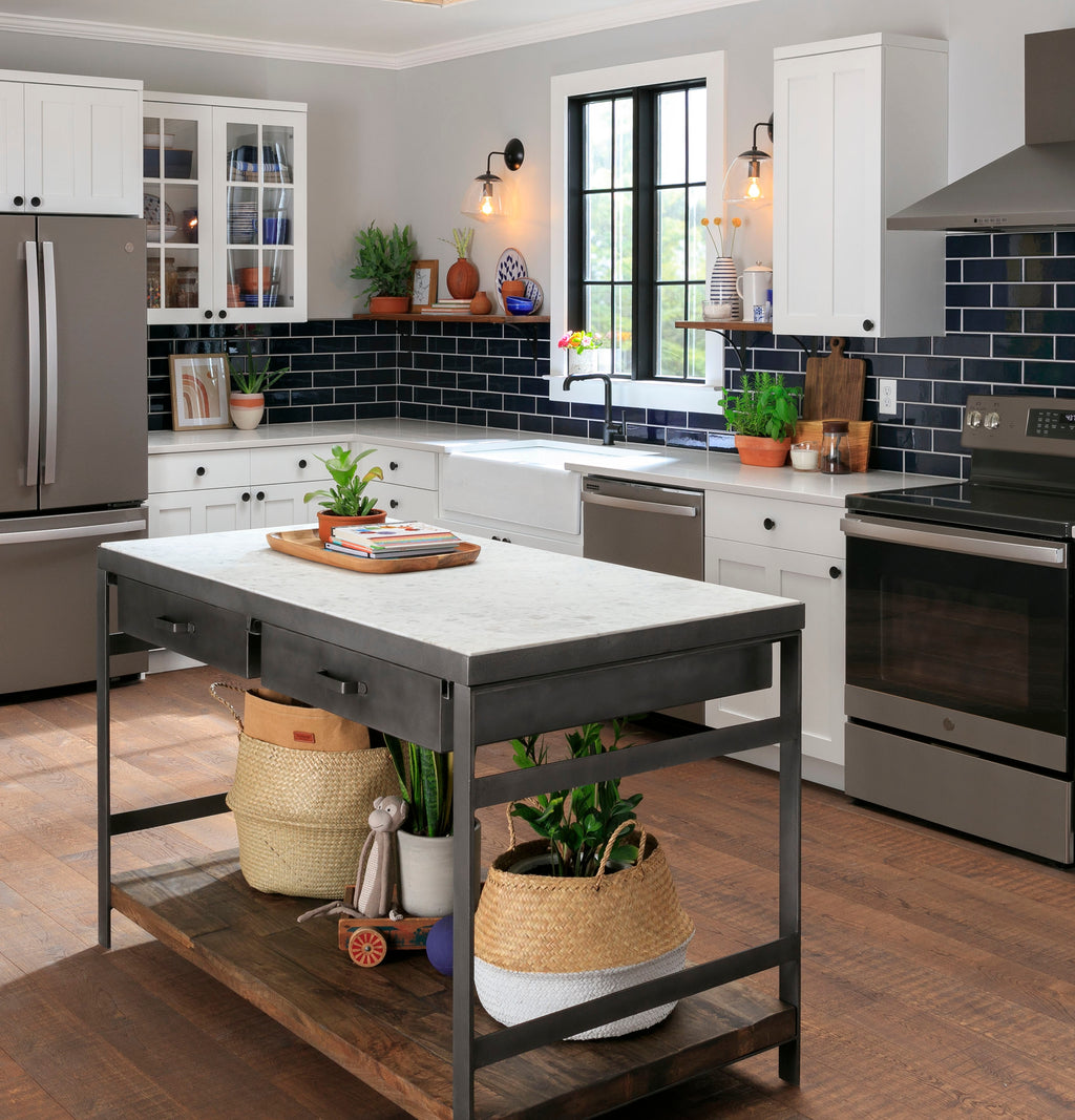 Offers a built-in look by fitting nearly flush with surrounding cabinetry