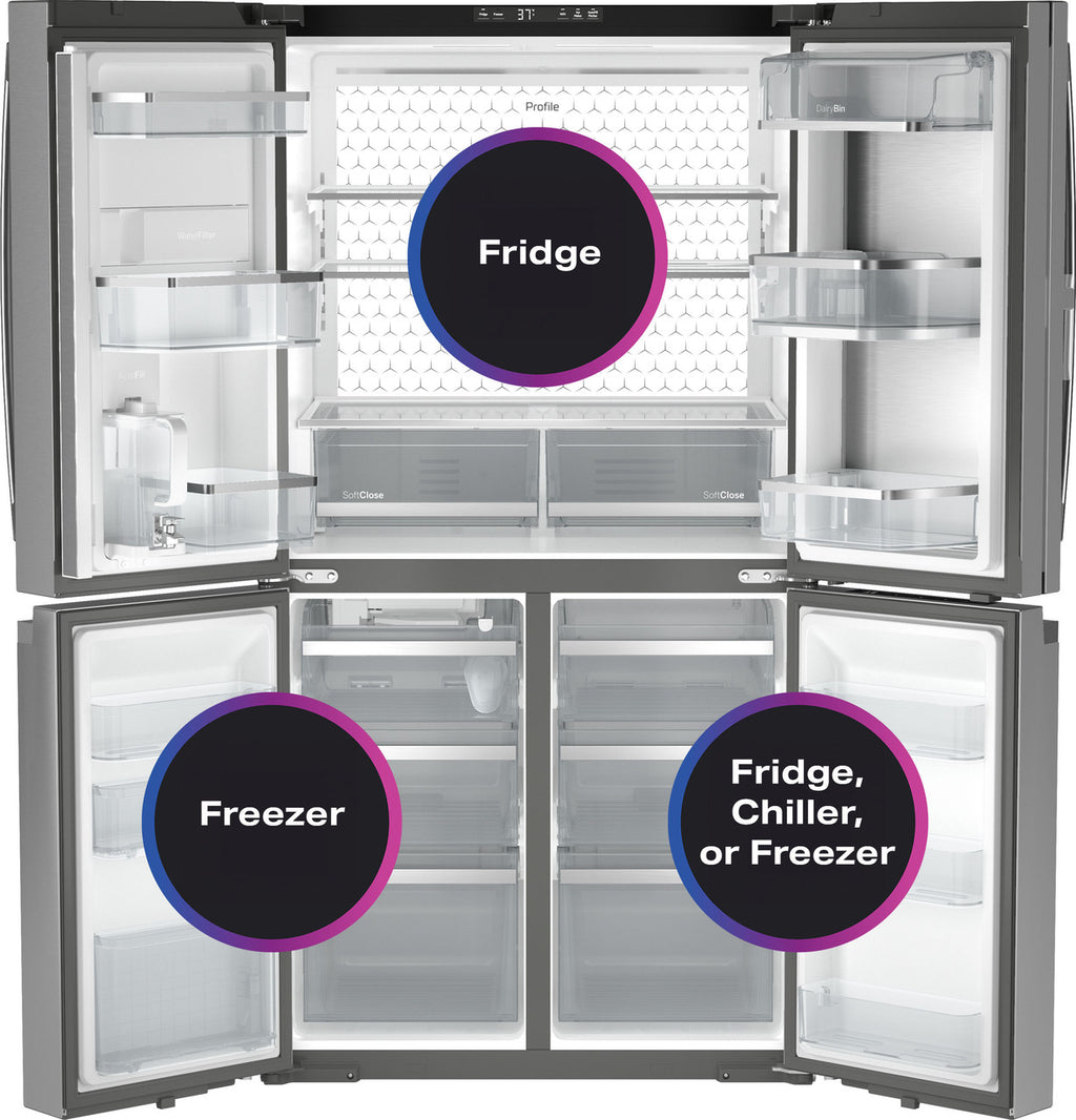 This dual evaporator refrigerator features TwinChill evaporator climate zones in the fresh food and freezer sections, which help keep food at optimum freshness