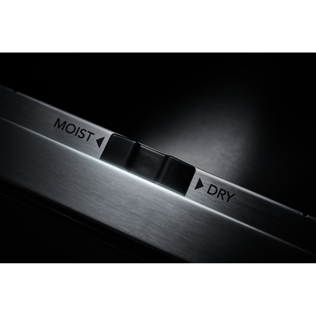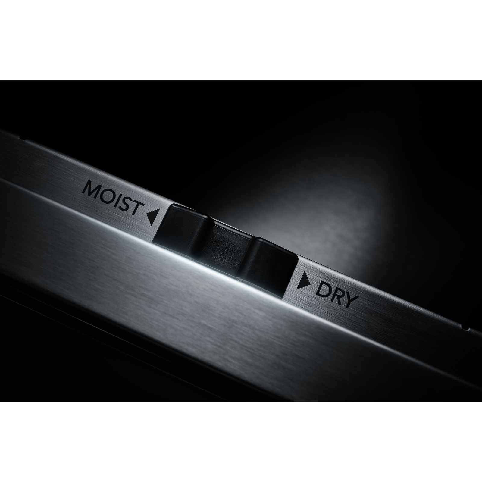 Two humidity settings allow you to precisely control the moistness or crispness of food by opening or closing the vent slots in the door. The Moist setting holds moisture in the drawer to keep food soft, while the Dry setting allows steam and moisture to escape from the drawer to keep food crispy.