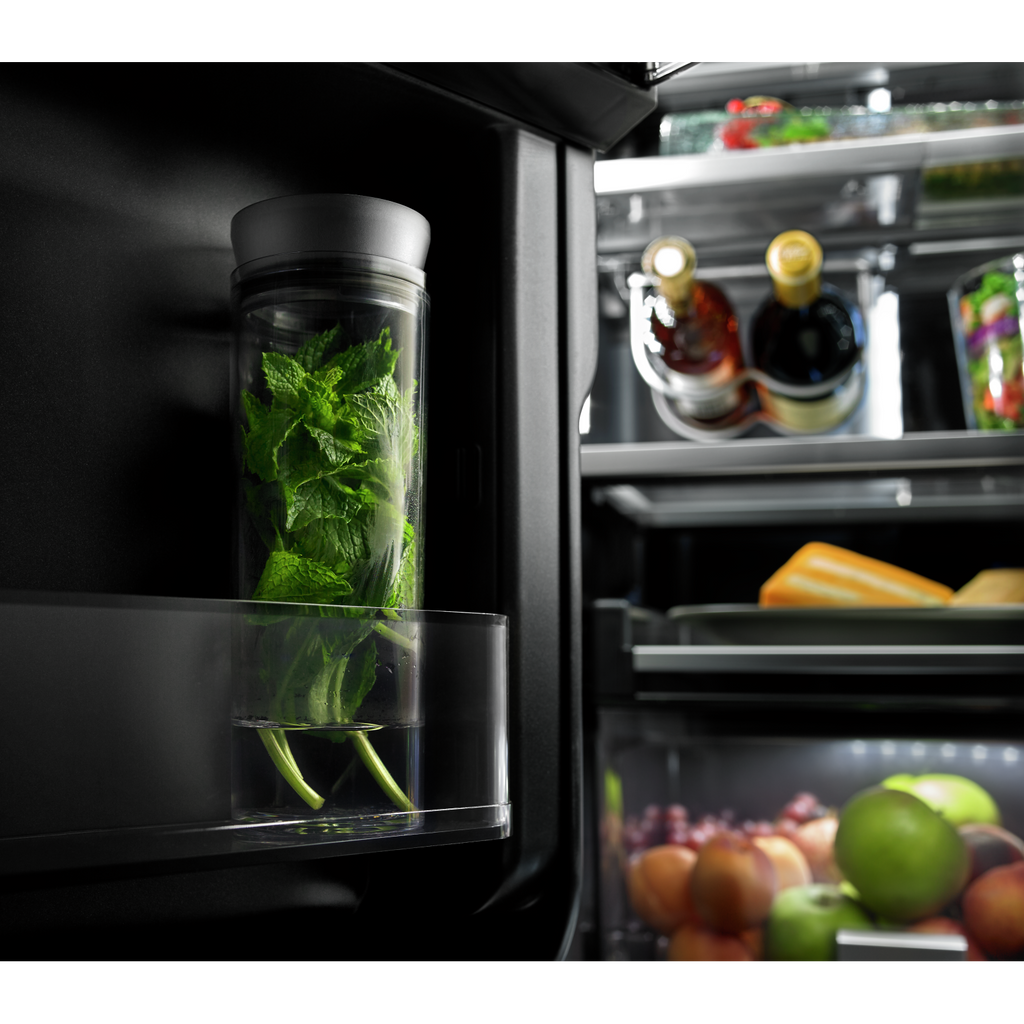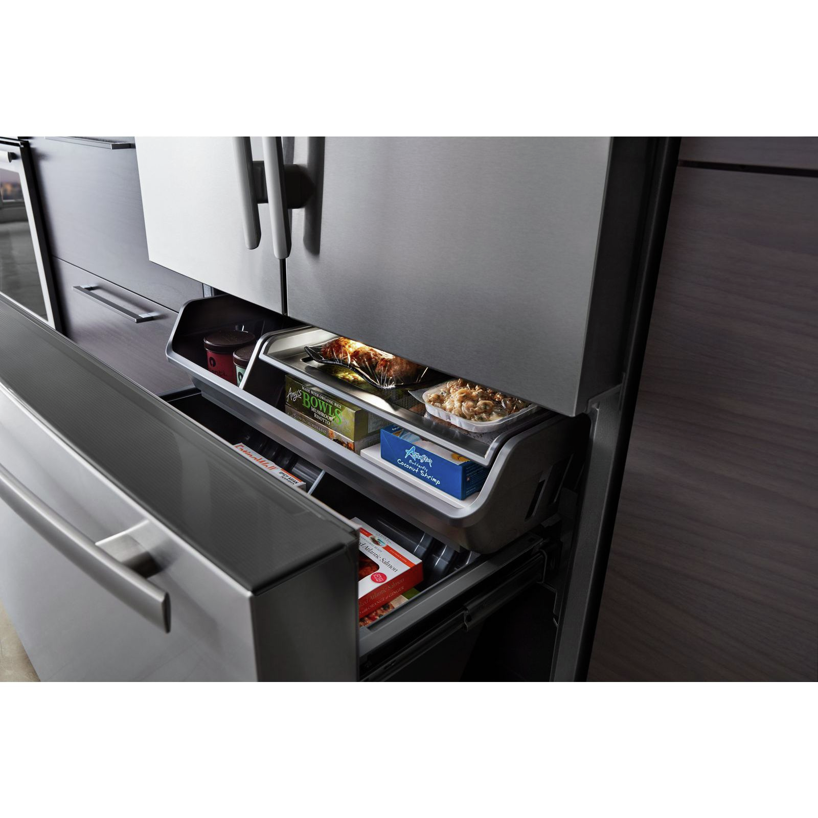 Showcases food items throughout the refrigerator, and provides a sharper contrast than white interiors. Includes coordinating crisper drawers and freezer.
