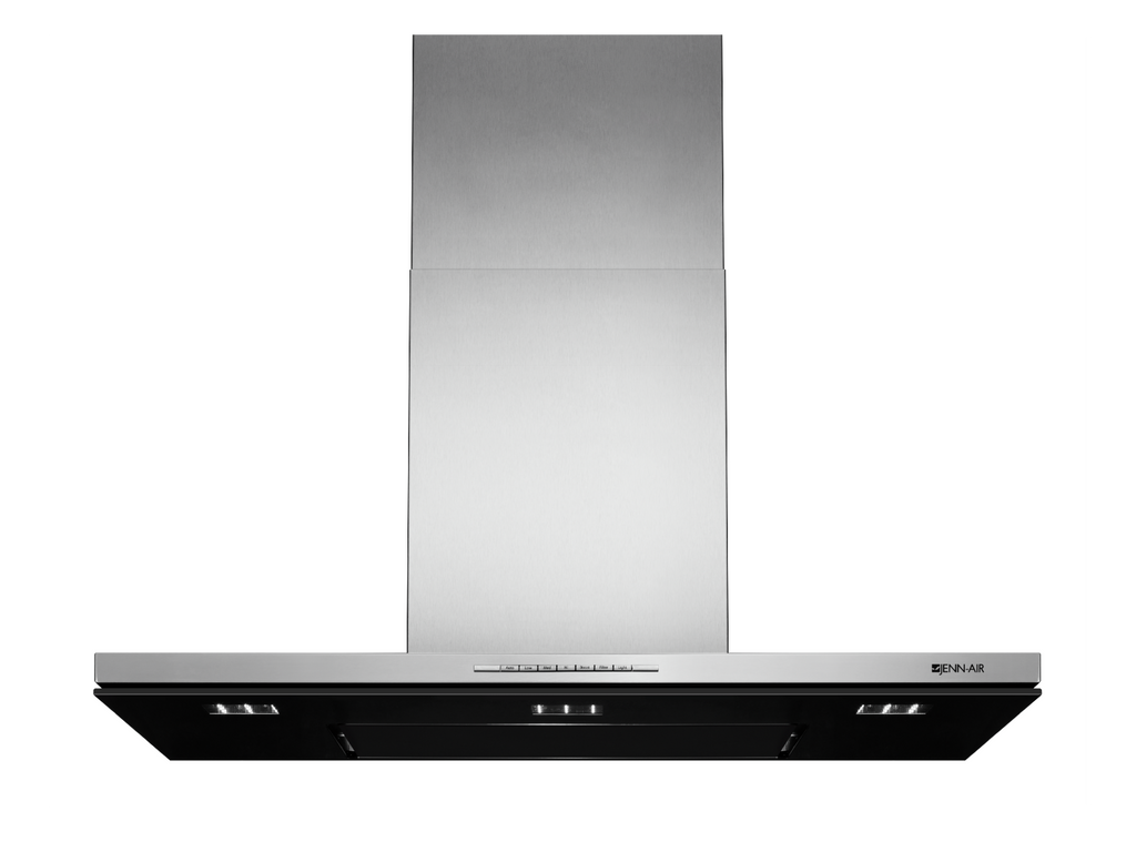 The glass panel adds to the elegant, light impression of the range hood.