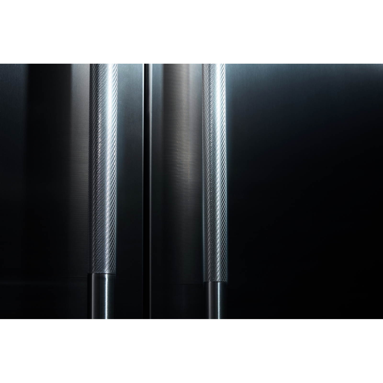 All-metal bin and shelf frames. Thick, naturally odor-resistant solid glass. A forcefield at the edge that prevents spillovers. To hell with cheap plastic in luxury door bins, shelves and liners.
