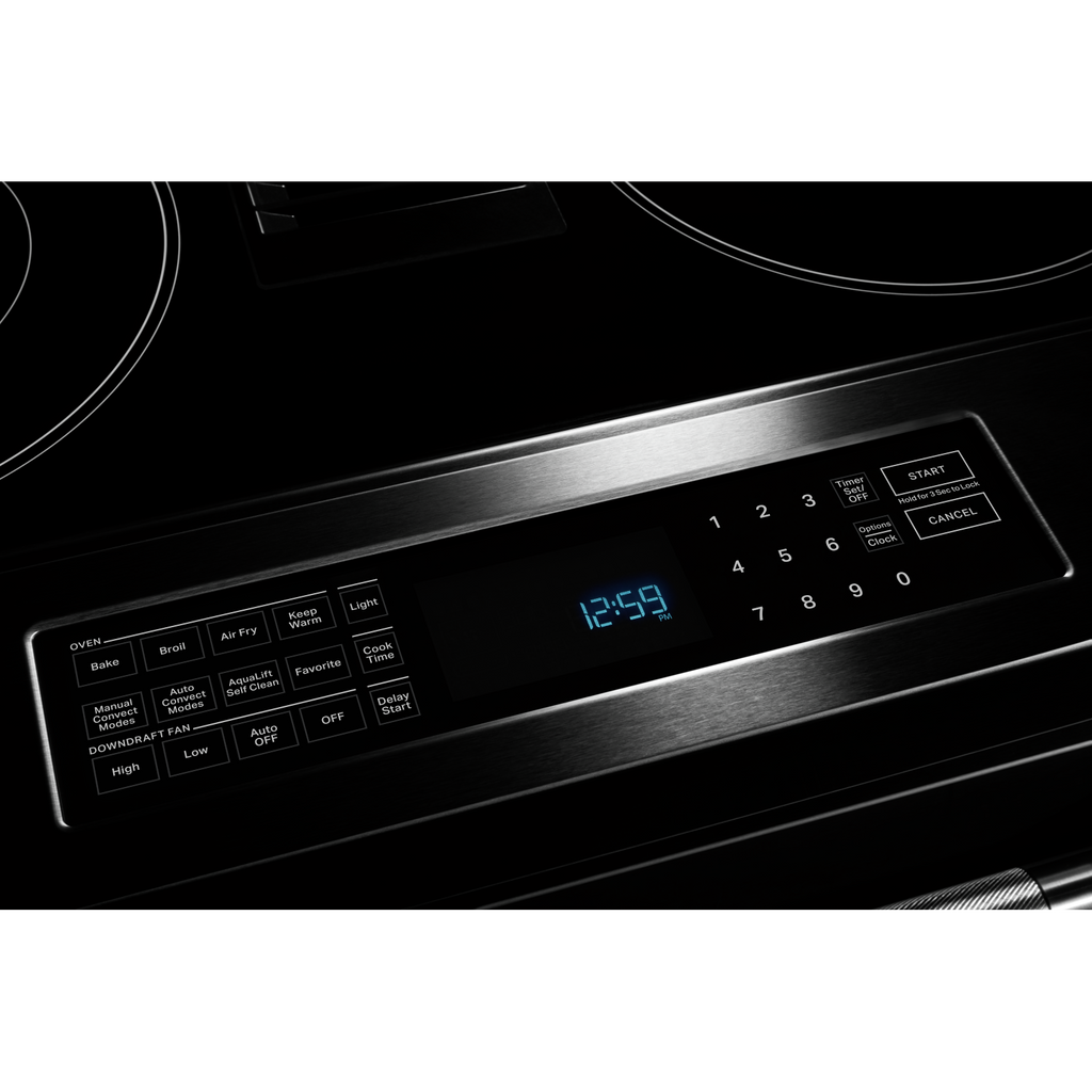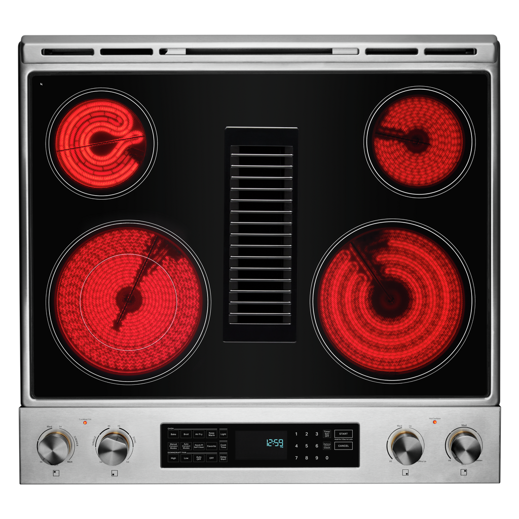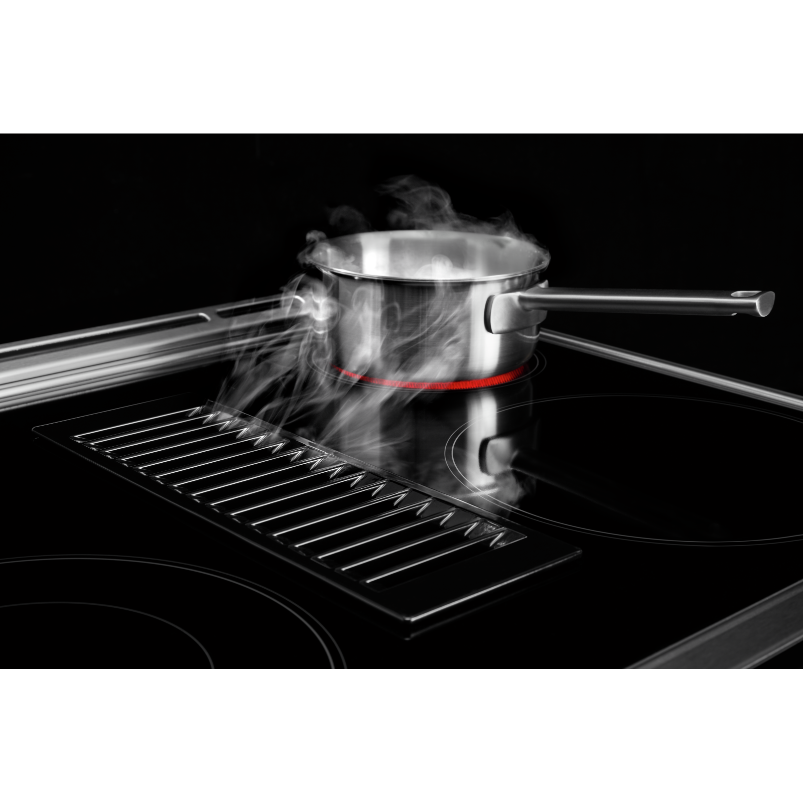 Developed and refined by JennAir brand, this downdraft ventilation system helps capture smoke, steam and odors at the cooking surface, drawing them down and out of the kitchen.
