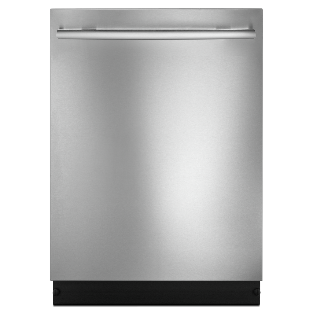 Refined stainless steel with curves for days and an understated badge. Complete your Euro-Style suite with a JennAir dishwasher.