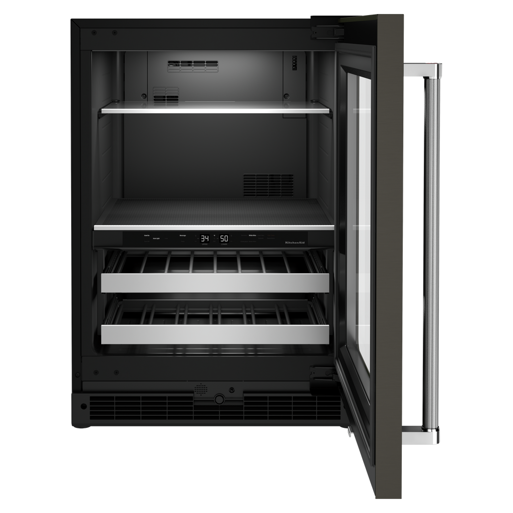 Provides a built-in look within a standard 24" base cabinet, so your style stands out, not the appliance. Hidden hinges allow the beverage center door to sit flush with surrounding cabinet fronts when closed yet easily swing open a full 115 degrees.