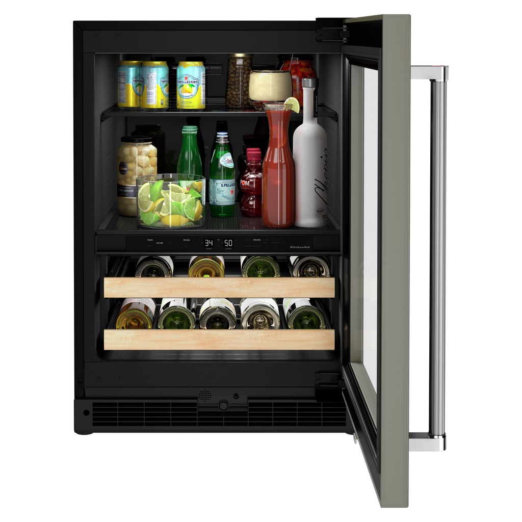 Allow you to chill red and white wines between 42-64°F in the lower zone and keep sodas, seltzers and craft brews at colder temperatures in the upper zone, which adjusts from a low of 33°F for cold drinks up to 40°F for cheese and charcuterie.