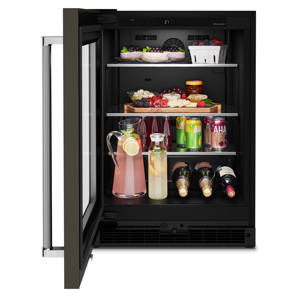 Provides a built-in look within a standard 24" base cabinet, so your style stands out, not the appliance. Hidden hinges allow the refrigerator door to sit flush with surrounding cabinet fronts when closed yet easily swing open a full 115 degrees.