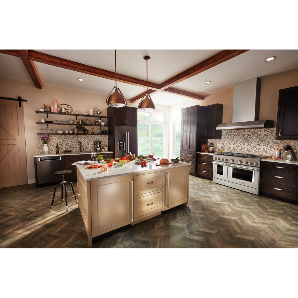 Allows you to install a custom front panel and handle (not included) over the door to create a seamless look with kitchen cabinetry.
