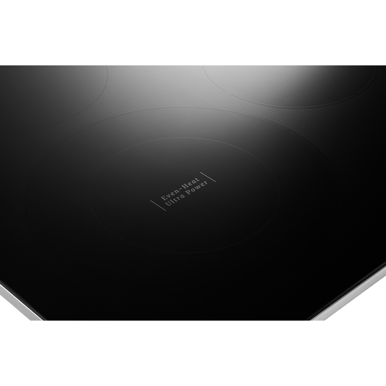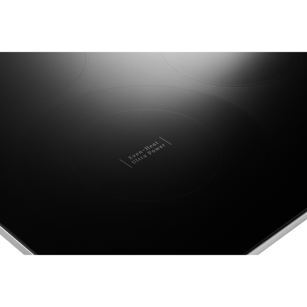 This 30" electric cooktop delivers exceptional results with the performance offered by a 10'' Even-Heat UltraPower Element with Simmer Setting, a 6'' Even-Heat Elements with Melt Setting, and 10"/6" Ultra Power Double-Ring Round Element designed to accommodate both large stock pots and six-inch sauté pans with ease and handle rapid boiling, searing and wok cooking.