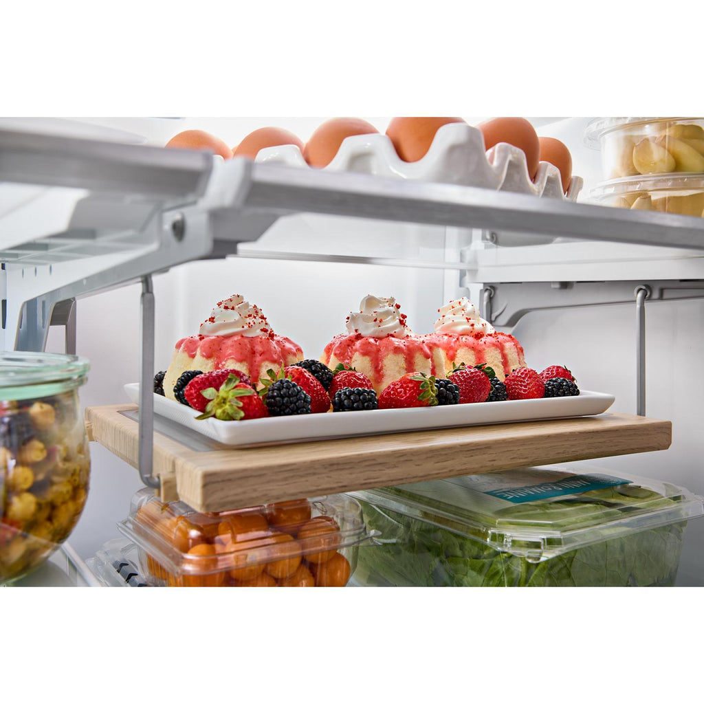 Enjoy freshness within reach. This KitchenAid counter-depth french door refrigerator features an interior water dispenser to keep the outside looking sleek. Get customizable storage with an adjustable wood-look nesting shelf