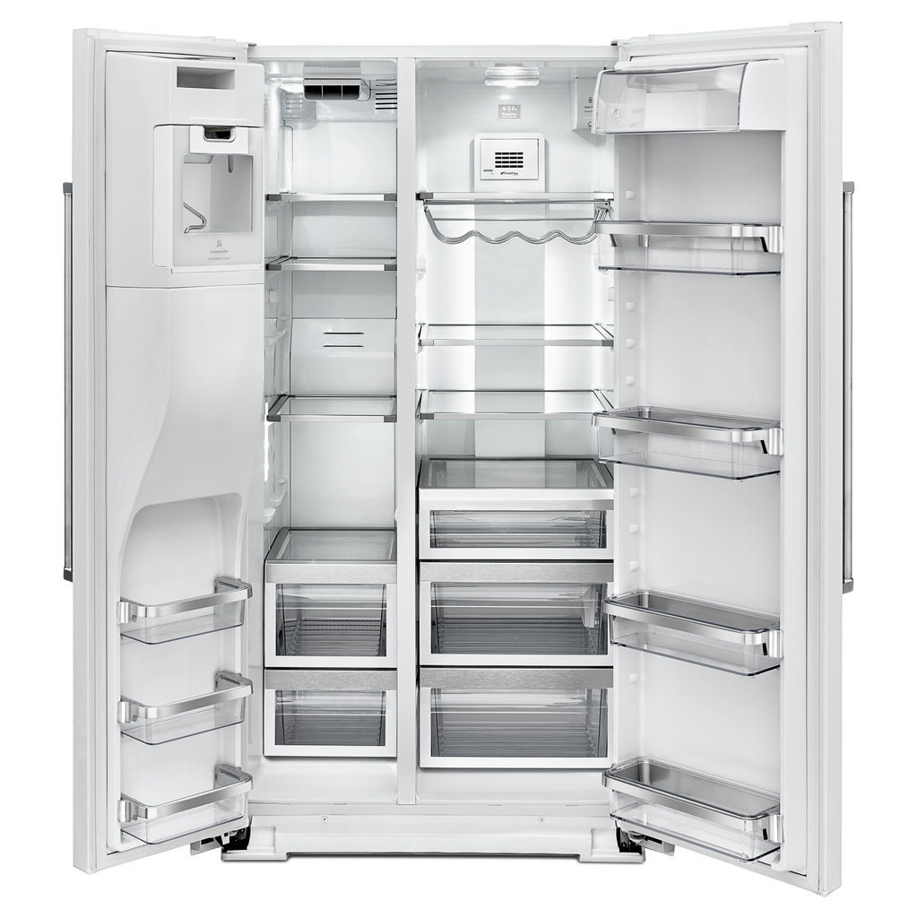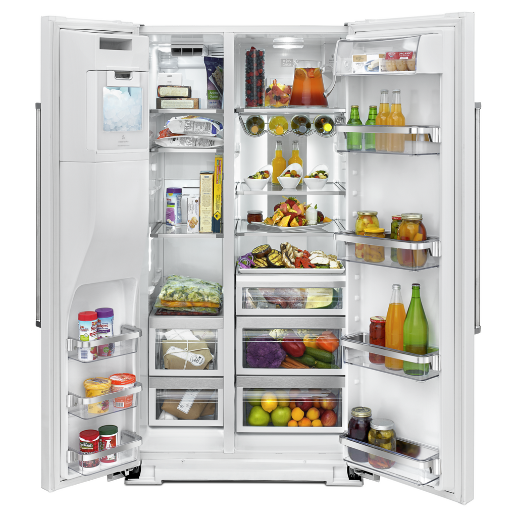 Combines a bold blend of professionally-inspired styling with sleek touches for the home. This beautiful side-by-side refrigeration unit features Satin Textured Handles and the KitchenAid(R) Badge, a symbol of uncompromised quality.