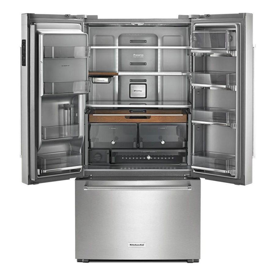 Provides the height of food preservation with two independent cooling systems plus a Produce Preserver to help keep food at its peak. The Linear Compressor's efficient cooling system offers minimal temperature variation and is our quietest freestanding french door refrigerator